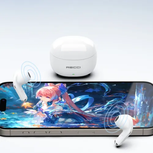 The Recci W81 MELODY is a premium set of wireless earbuds that perfectly combines cutting-edge audio technology, stylish design, and all-day comfort, making it an ideal choice for music enthusiasts, professionals, and on-the-go users. The Recci W81 MELODY Earbuds feature a semi-in-ear ergonomic design, providing a secure and comfortable fit that minimizes ear fatigue even during long listening sessions, while the 13mm Hi-Fi speaker drivers deliver deep, resonant bass, clear treble, and high-fidelity sound for an immersive audio experience. With Bluetooth 5.3 connectivity, the Recci W81 MELODY Bluetooth Earbuds offer stable, low-latency performance, ensuring uninterrupted music streaming and HD voice calls with crystal-clear clarity. The Recci W81 MELODY TWS comes in a compact, stylish form factor adorned with a radium-carved RECCI logo, reflecting premium aesthetics while remaining lightweight at just 32g. Each earbud is powered by a 25mAh battery, complemented by a 250mAh Type-C charging case, providing up to 30 hours of total playback, 4 hours of music playback, and 3 hours of talk time at 80% volume, with a fast 1.5-hour charging time for quick power-ups. Additional benefits of the Recci W81 series include seamless pairing via the REP-W81 name, fast charging, stable connection thanks to the Blue News AB5656 chip, and a compact, portable design ideal for commuting, workouts, or casual listening. Combining superior sound quality, ergonomic comfort, fast wireless performance, and stylish design, the Recci W81 Bluetooth Earbuds and TWS version set a new standard in wireless audio, making them an essential gadget for anyone seeking high-quality sound and convenience in a sleek, modern package.